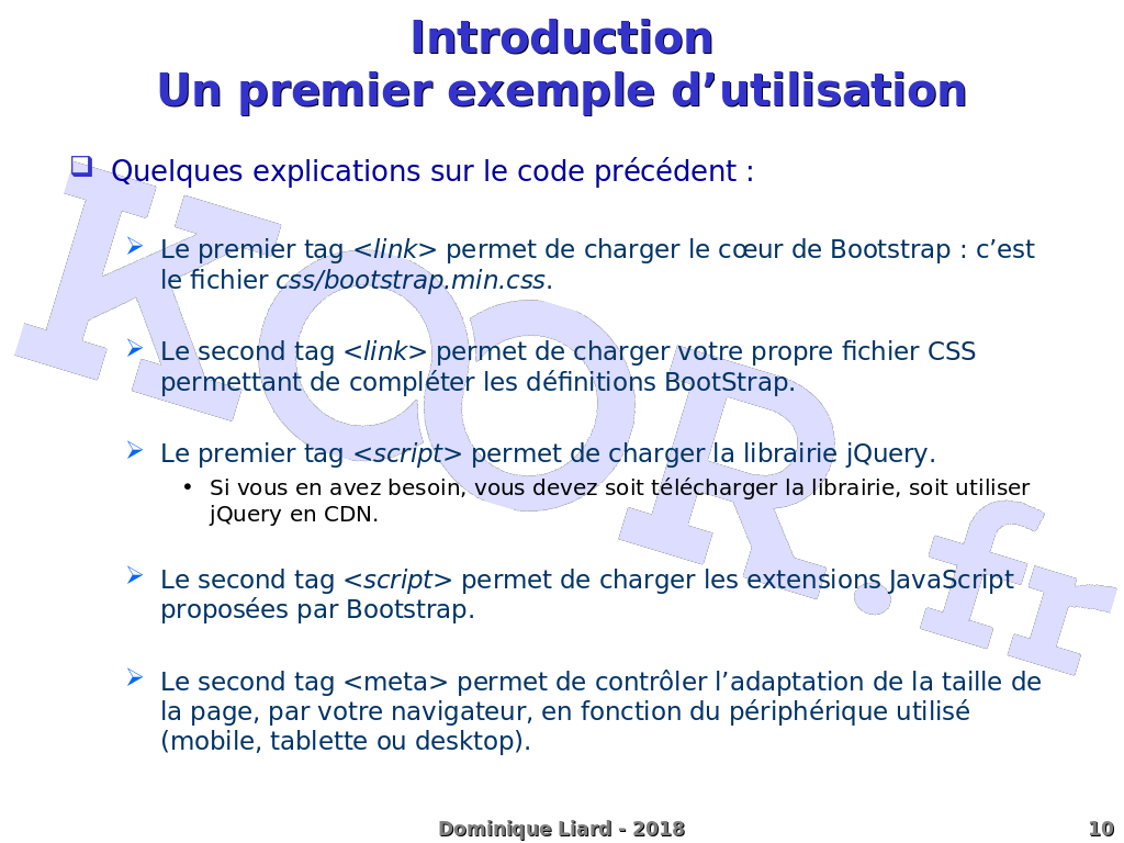 Le premier tag <link> permet de charger le c?ur de Bootstrap : c?est le fichier css/bootstrap.min.css.