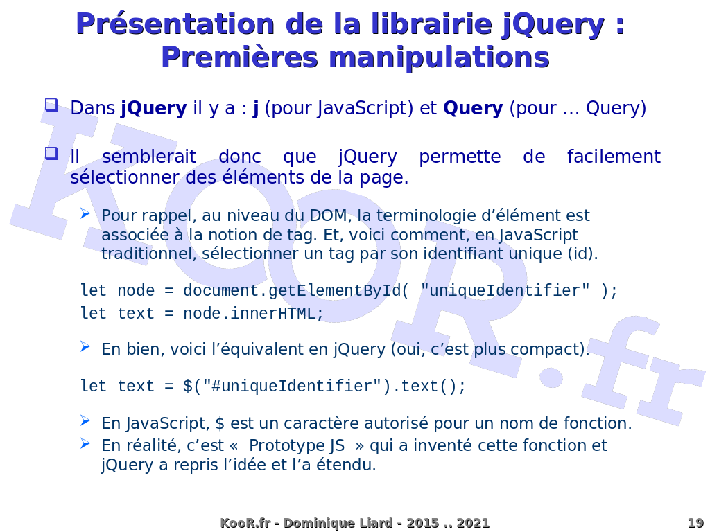 Dans jQuery il y a : j (pour JavaScript) et Query (pour ? Query)