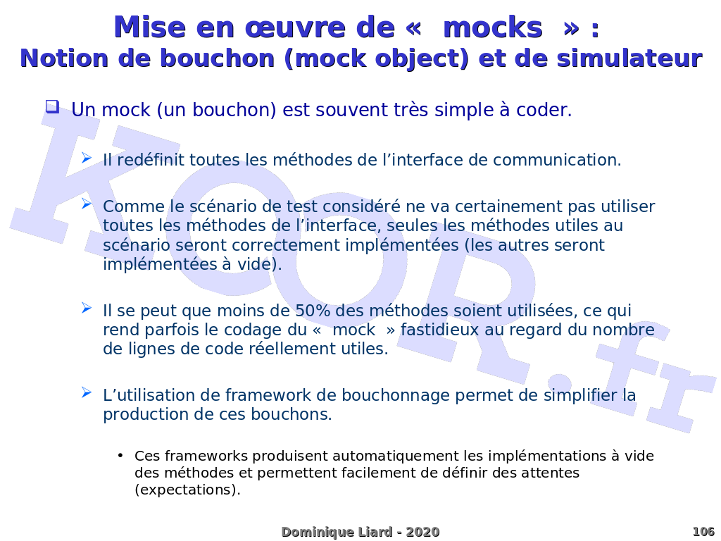 Mise en ?uvre de « mocks » : Notion de bouchon (mock object) et de simulateur