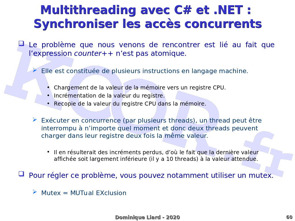 Le problème que nous venons de rencontrer est lié au fait que l'expression counter++ n'est pas atomique.
