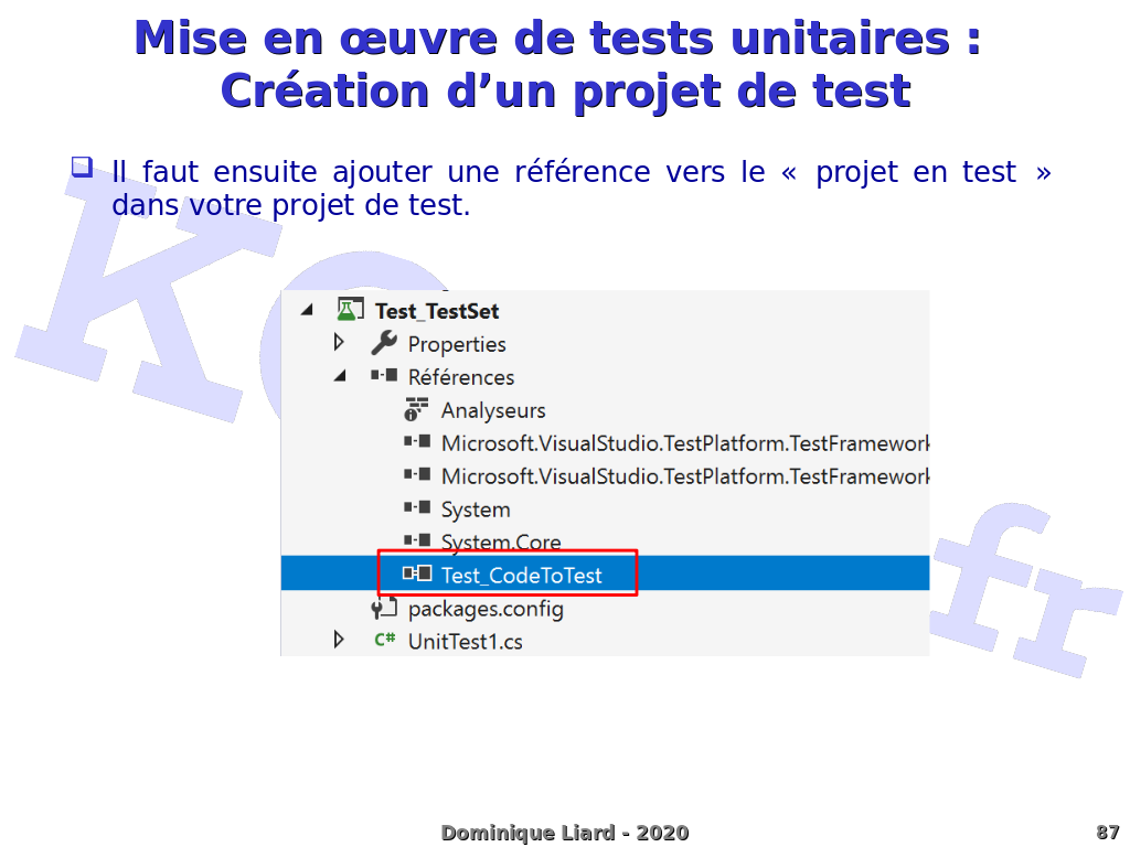 Mise en ?uvre de tests unitaires : Création d'un projet de test