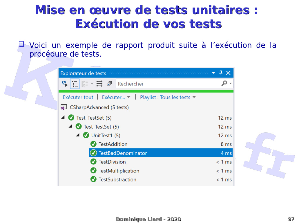 Programmation C# - Concepts avancés Mise en uvre de tests unitaires